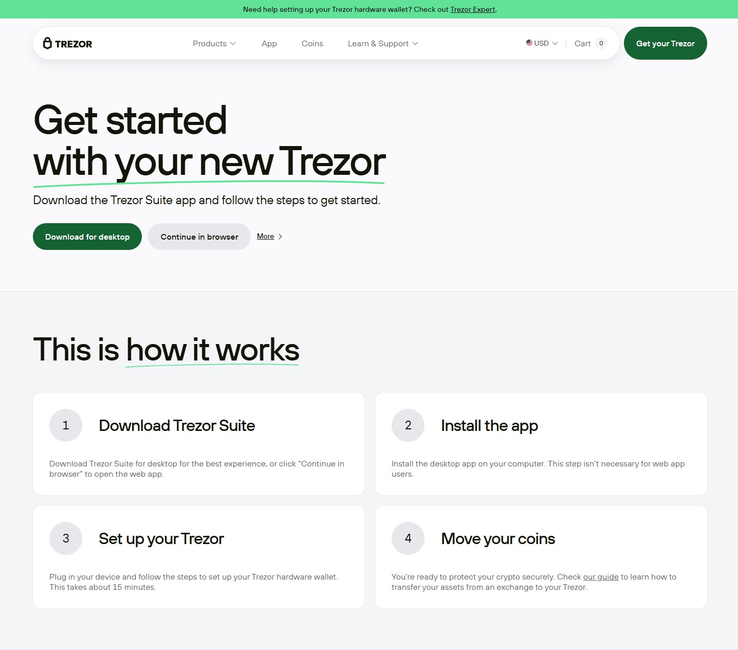 Setting up your hardware wallet through Trezor.io/Start is simple and beginner-friendly.